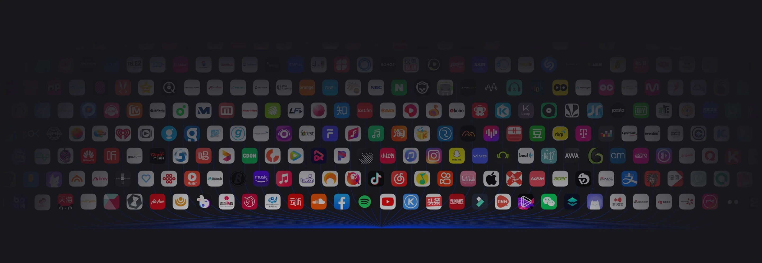 通过我们 100% 免费的音乐分发,您可以将您的音乐传输到 TME、网易云、Spotify、Apple Music 和全球 150+音乐流媒体平台。